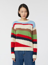 DETAILS Sweater embellished with an all-over inlaid pattern. - Cotton-blend yarn sweater - Regular fit and length - Crew-neck - Long low set-in sleeves - Rib-knit trims COMPOSITION AND CARE 60% cotton, 40% acrylic. Hand wash cold (40°c max); do not bleach; do not tumble dry; flat drying in the shade; cool iron; professionally dry clean perchloroethylene - mild process; do not wet clean.; iron with a cloth between.; using neutral detergent. Distributed by Max Mara S.r.l., registered office in Reggio Emilia (Italy), Via Giulia Maramotti 4, 42124 (IT)