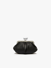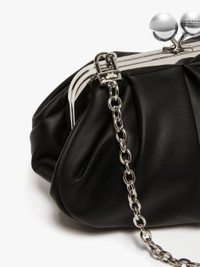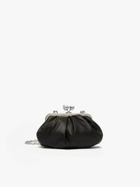 DETAILS The small Pasticcino Bag is the awesome clutch that will add a personal, captivating touch to your everyday style. Bag in soft and light Nappa sheepskin Striped lining with a branded label Removable chain shoulder strap with leather pad detail Branded metal Weekend Max Mara sphere clasp Size: 19 x 10 x 15 cm COMPOSITION AND CARE Handbag in ram; lining in 100%polyester. Distributed by Max Mara S.r.l., registered office in Reggio Emilia (Italy), Via Giulia Maramotti 4, 42124 (IT)