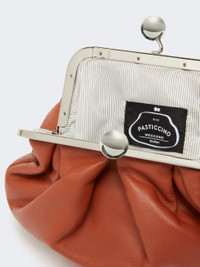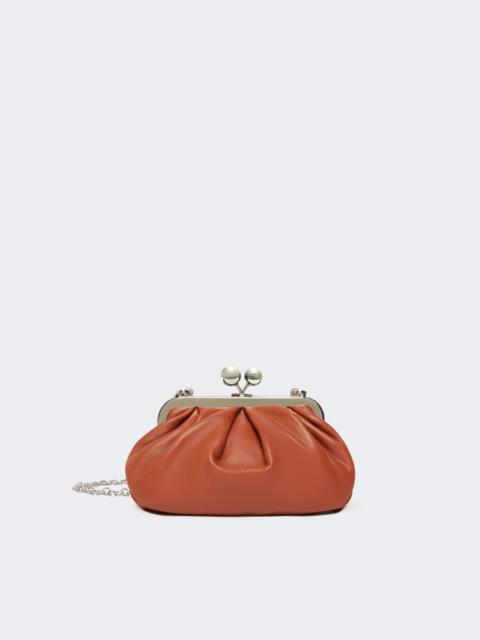 DETAILS The small Pasticcino Bag is the awesome clutch that will add a personal, captivating touch to your everyday style. Bag in soft and light Nappa sheepskin Striped lining with a branded label Removable chain shoulder strap with leather pad detail Branded metal Weekend Max Mara sphere clasp Size: 19 x 10 x 15 cm COMPOSITION AND CARE Handbag in ram; lining in 100%polyester. Distributed by Max Mara S.r.l., registered office in Reggio Emilia (Italy), Via Giulia Maramotti 4, 42124 (IT)