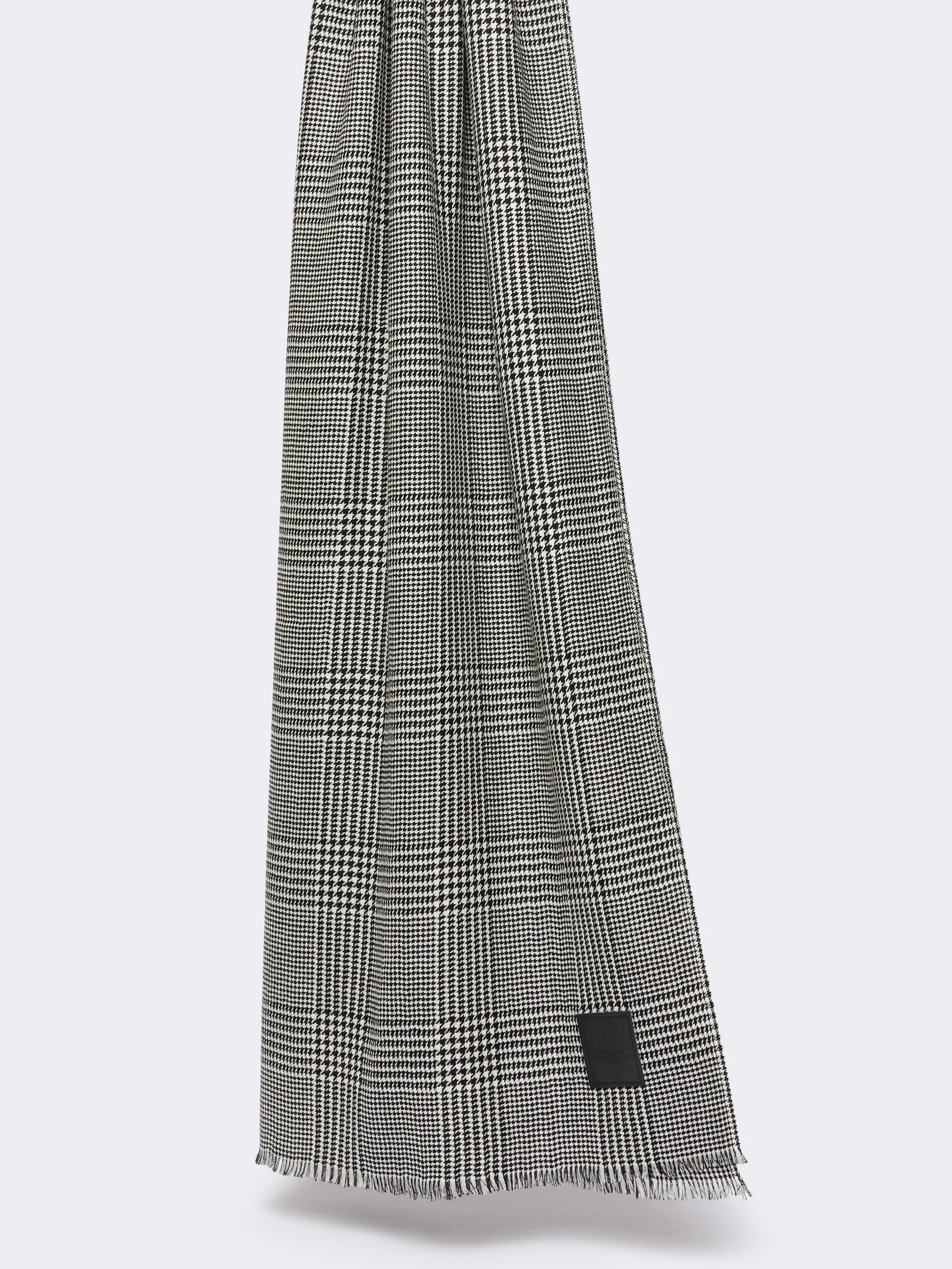 DETAILS Wide and enveloping stole, yarn-dyed with masculine-inspired designs. Pure wool stole Fringed edges on the short sides Customised leather label on the hem Measurements: 180 x 80 cm COMPOSITION AND CARE 100% wool. Do not wash; do not bleach; do not tumble dry; cool iron; professionally dry clean perchloroethylene - mild process; do not wet clean.; do not iron the real leather details.; contains non-textile parts of animal origin. Distributed by Max Mara S.r.l., registered office in Reggio Emilia (Italy), Via Giulia Maramotti 4, 42124 (IT)