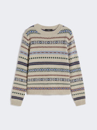 DETAILS Crew-neck jumper, featuring a jacquard knit that creates a contrasting all-over pattern. Wool and alpaca knit jumper Regular volume and medium length Long set-in sleeves Ribbed trim COMPOSITION AND CARE 45% acrylic, 40% alpaca, 15% wool. Hand wash cold (40°c max); do not bleach; do not tumble dry; flat drying in the shade; cool iron; professionally dry clean perchloroethylene - mild process; do not wet clean.; iron with a cloth between.; using neutral detergent. Distributed by Max Mara S.r.l., registered office in Reggio Emilia (Italy), Via Giulia Maramotti 4, 42124 (IT)