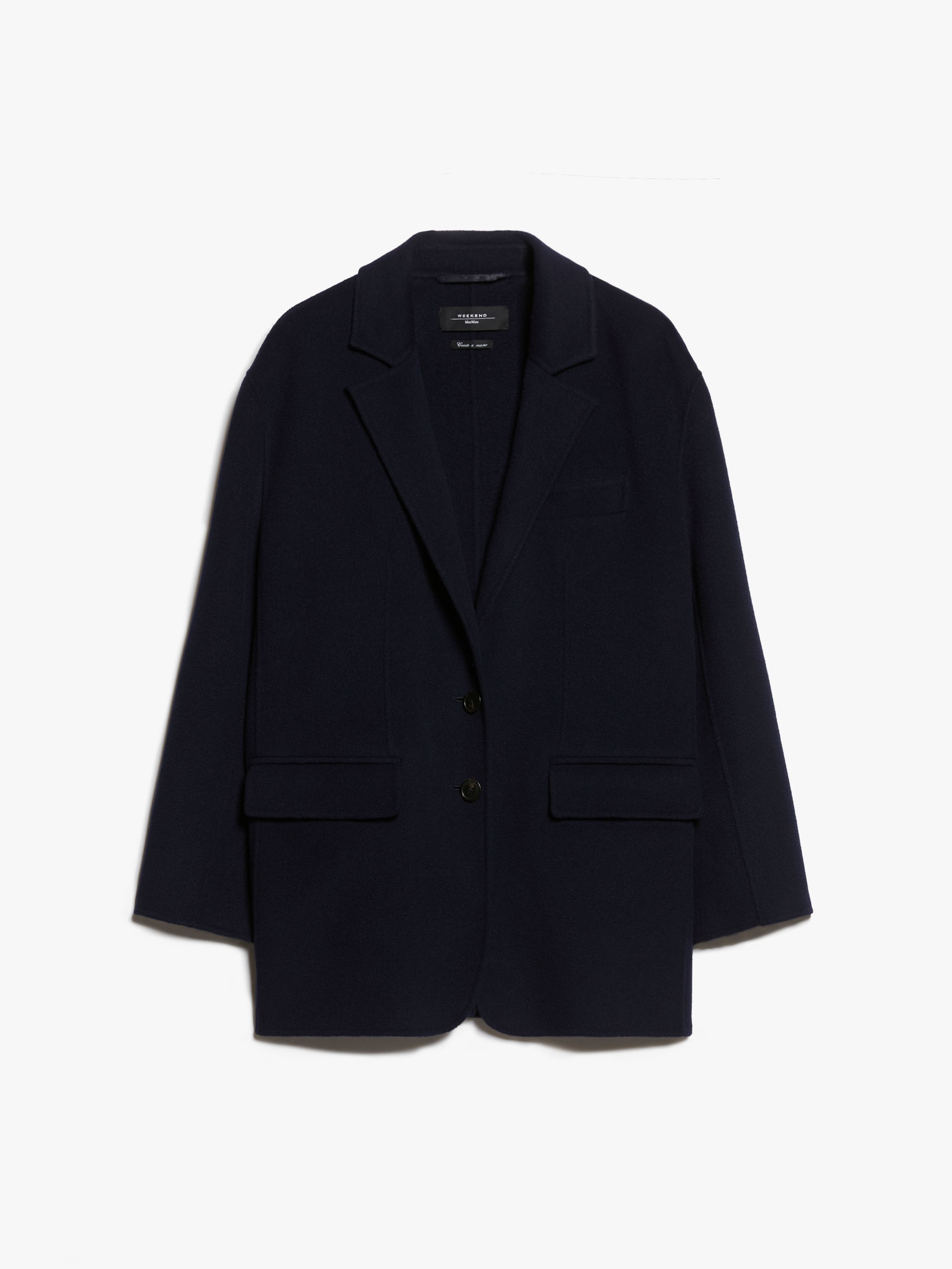 DETAILS Single-breasted tailored jacket in fine double-faced pure wool fabric featuring a lapel collar, drop-shoulder set-in sleeves and flap-adorned front pockets. The unlined model boasts a slightly fitted waist cut, in addition to a breast pocket and central rear vent. Button fastening. COMPOSITION AND CARE Fabric 100% virgin wool; - except joining thread; lining 50% polyester, 50% viscose. Do not wash; do not bleach; do not tumble dry; cool iron; professionally dry clean perchloroethylene - mild process; do not wet clean. Distributed by Max Mara S.r.l., registered office in Reggio Emilia (Italy), Via Giulia Maramotti 4, 42124 (IT)