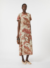 DETAILS T-shirt-style dress featuring a figure-skimming straight cut. Printed pure silk crepe de chine dress Crew-neck Short set-in sleeves Small button-fastening keyhole detail at the back In-seam side pockets Unlined model COMPOSITION AND CARE 100% silk. Hand wash cold (40°c max); do not bleach; do not tumble dry; line drying in the shade; cool iron; professionally dry clean perchloroethylene - mild process; do not wet clean.; wash the garment while it is fastened.; contains non-textile parts of animal origin. Distributed by Max Mara S.r.l., registered office in Reggio Emilia (Italy), Via Giulia Maramotti 4, 42124 (IT)