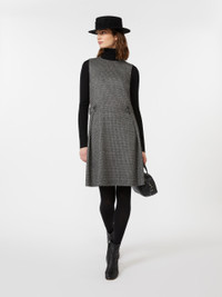 DETAILS Short sleeveless dress with pleated pattern on the side and a martingale at the waist back with buttons on the sides. Viscose-blend jersey dress Flared Crew neck Lined COMPOSITION AND CARE Outer fabric 77% viscose, 22% polyester, 1% elastane; inner fabric 100% polyester; lining 95% polyester, 5% elastane. Do not wash; do not bleach; do not tumble dry; cool iron; professionally dry clean perchloroethylene - mild process; do not wet clean.; iron with a cloth between.; protect buttons before washing. Distributed by Max Mara S.r.l., registered office in Reggio Emilia (Italy), Via Giulia Maramotti 4, 42124 (IT)