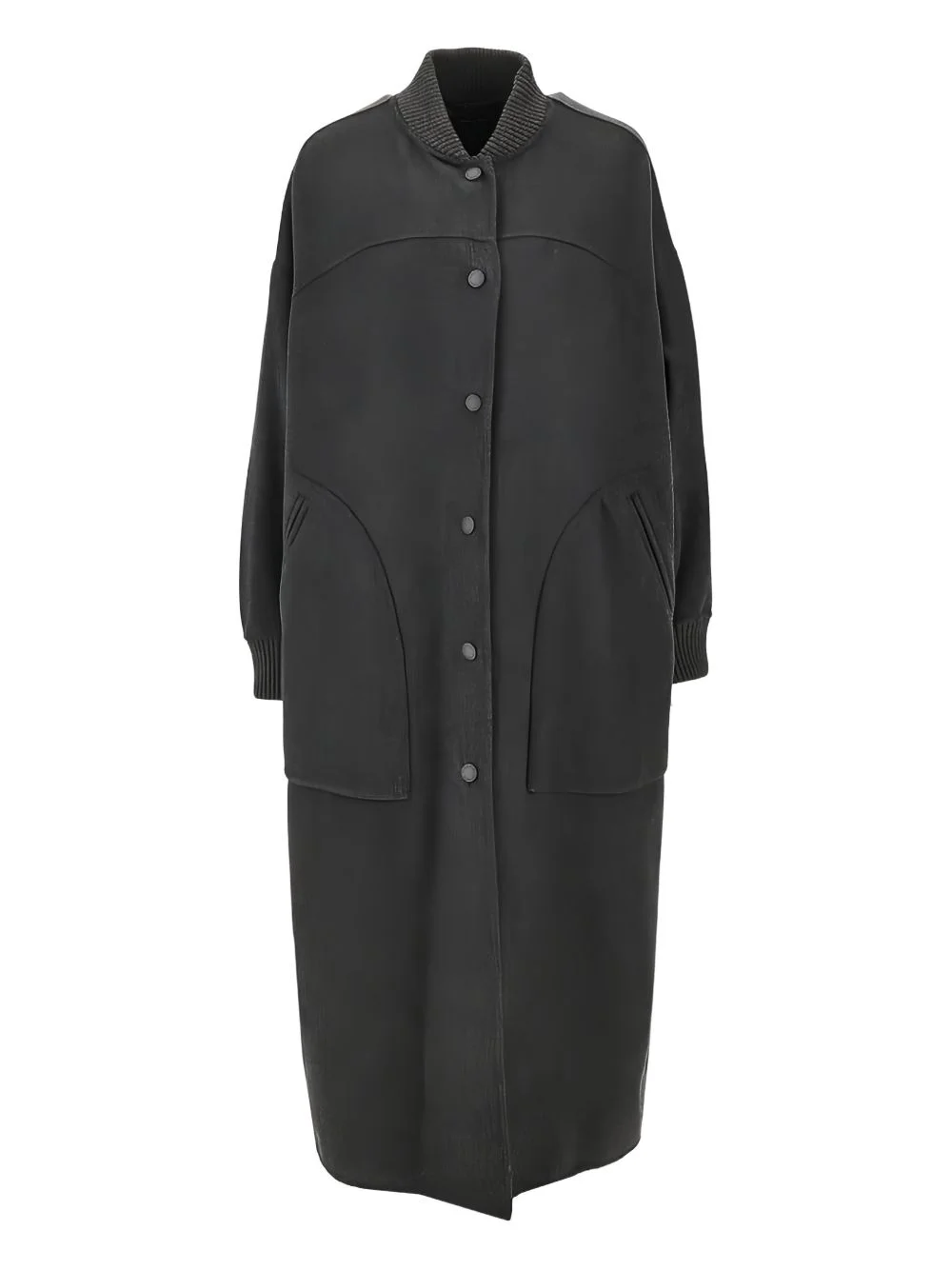 rib-knit pocket parka coat Highlights - Anthracite - Rib knit trim - Front button fastening - Front pockets - Long length Imported Composition Virgin Wool 90%, Polyamide 10%