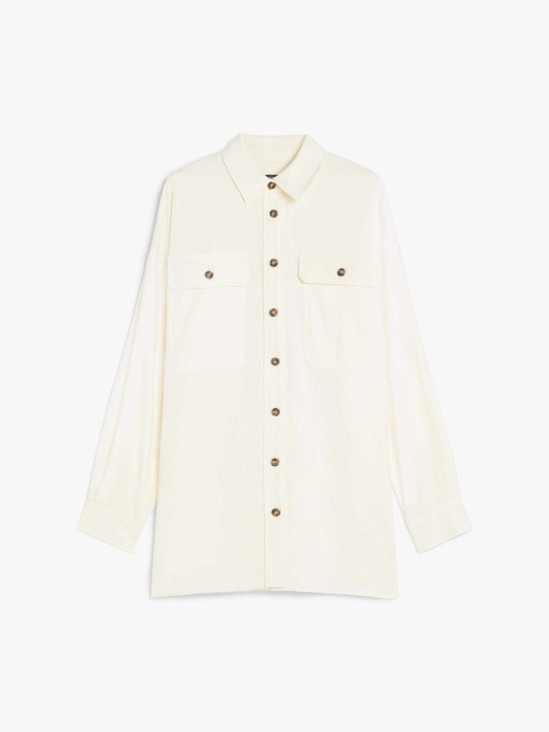 DETAILS Long, oversized shirt in soft, pure cotton flannel, featuring long sleeves with dropped shoulders, buttoned cuffs and large, flap-and-button pockets on the chest. Straight-cut style finished with side slits and rounded hem, slightly longer at the back. Visible button fastening. COMPOSITION AND CARE 100% cotton. Hand wash cold; do not bleach; do not tumble dry; line drying in the shade; cool iron; professionally dry clean perchloroethylene - mild process; do not wet clean. Distributed by Max Mara S.r.l., registered office in Reggio Emilia (Italy), Via Giulia Maramotti 4, 42124 (IT)