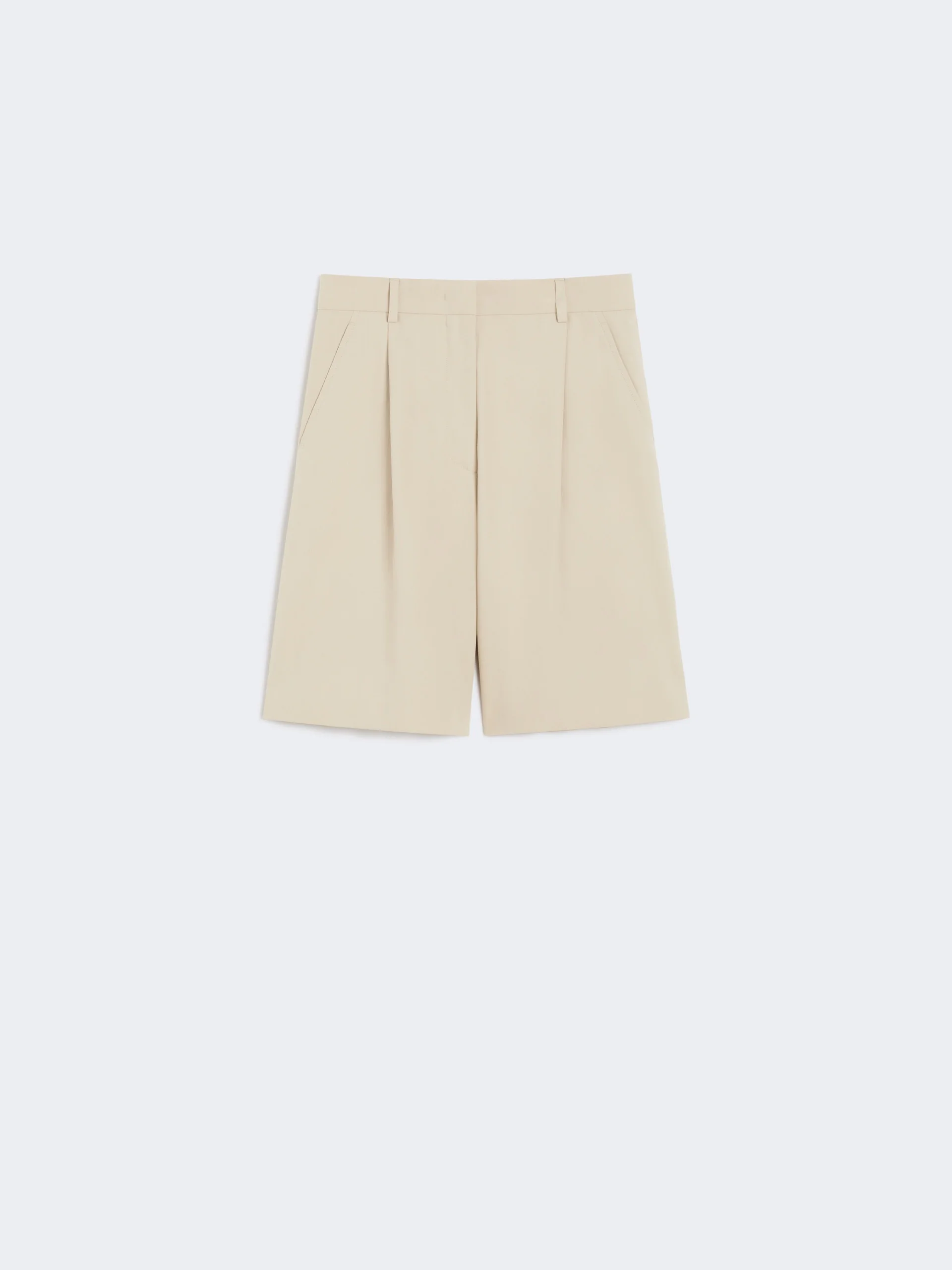 DETAILS Tailored Bermuda shorts with a relaxed, slightly flared fit. Pure cotton gabardine Bermuda shorts High-cut waistband with a fly-covered zip and hook-and-bar fastening Slant side pockets Buttoned welt rear pockets Front waist darts Belt loops and pressed pleat detail COMPOSITION AND CARE Fabric 100% cotton; lining 100% cotton. Machine wash cold delicate cycle; do not bleach; do not tumble dry; line drying in the shade; cool iron; professionally dry clean perchloroethylene - mild process. Distributed by Max Mara S.r.l., registered office in Reggio Emilia (Italy), Via Giulia Maramotti 4, 42124 (IT)