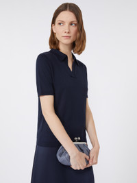 DETAILS Stockinette-stitched T-shirt with a regular fit and cut. - Silk and cotton yarn T-shirt - Open polo-style collar - Short set-in sleeves - Regular length - Rib-knit trims COMPOSITION AND CARE 55% silk, 45% cotton. Hand wash cold; do not bleach; do not tumble dry; flat drying in the shade; cool iron; professionally dry clean perchloroethylene - mild process; do not wet clean.; iron with a cloth between.; using neutral detergent. Distributed by Max Mara S.r.l., registered office in Reggio Emilia (Italy), Via Giulia Maramotti 4, 42124 (IT)