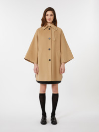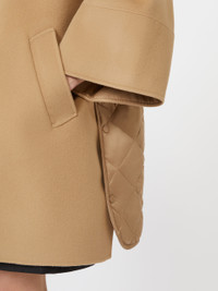 DETAILS Single-breasted coat with water-repellent canvas at the back, diamond quilted and padded with Luxepad ultra-fine insulating technology camel-silk blend edition. Pure wool double drap coat Wide lines, side slits and snap buttons Shirt collar with chin strap Wide raglan sleeves Front fastening with snap buttons Welt pockets on the sides Rounded hemline at the back COMPOSITION AND CARE Fabric 100% virgin wool; - except joining thread; back 100% polyester; with quilting in 49% polyester, 46% camelwool, 5% silk; lining 100% polyester; other parts 65% cotton, 35% polyester; upper lining 100% cotton. Do not wash; do not bleach; do not tumble dry; cool iron; professionally dry clean perchloroethylene - mild process; do not wet clean.; wash the garment while it is fastened.; protect the buckle before washing.; turn the articles inside out before washing.; contains non-textile parts of animal origin. Distributed by Max Mara S.r.l., registered office in Reggio Emilia (Italy), Via Giulia Maramotti 4, 42124 (IT)