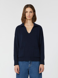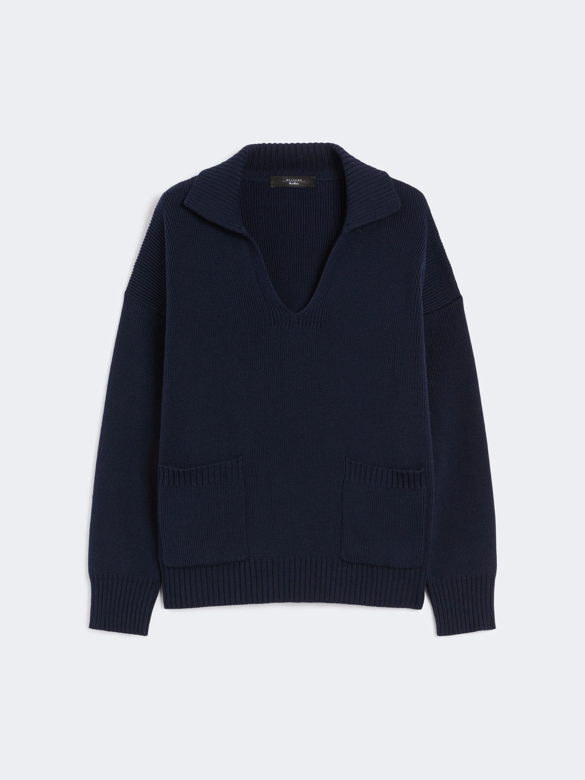 DETAILS Long-sleeved sweater featuring an open polo-style collar. Pure cotton yarn sweater Regular fit and length Dropped shoulders Patch front pockets Rib-knit finishes and trims COMPOSITION AND CARE 100% cotton. Hand wash cold (40°c max); do not bleach; do not tumble dry; flat drying in the shade; cool iron; professionally dry clean perchloroethylene - mild process; do not wet clean.; iron with a cloth between.; using neutral detergent. Distributed by Max Mara S.r.l., registered office in Reggio Emilia (Italy), Via Giulia Maramotti 4, 42124 (IT)