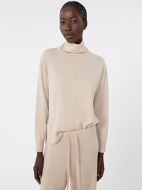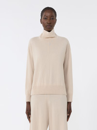 DETAILS Crater-neck jumper featuring a central ribbed motif on the front. Wool and cashmere knit jumper Long sleeves with dropped shoulders Side slits at the hem Hem slightly longer at the back Ribbed trim COMPOSITION AND CARE 80% wool, 20% cashmere. Hand wash cold (40°c max); do not bleach; do not tumble dry; flat drying in the shade; cool iron; professionally dry clean perchloroethylene - mild process; do not wet clean.; iron with a cloth between.; using neutral detergent. Distributed by Max Mara S.r.l., registered office in Reggio Emilia (Italy), Via Giulia Maramotti 4, 42124 (IT)