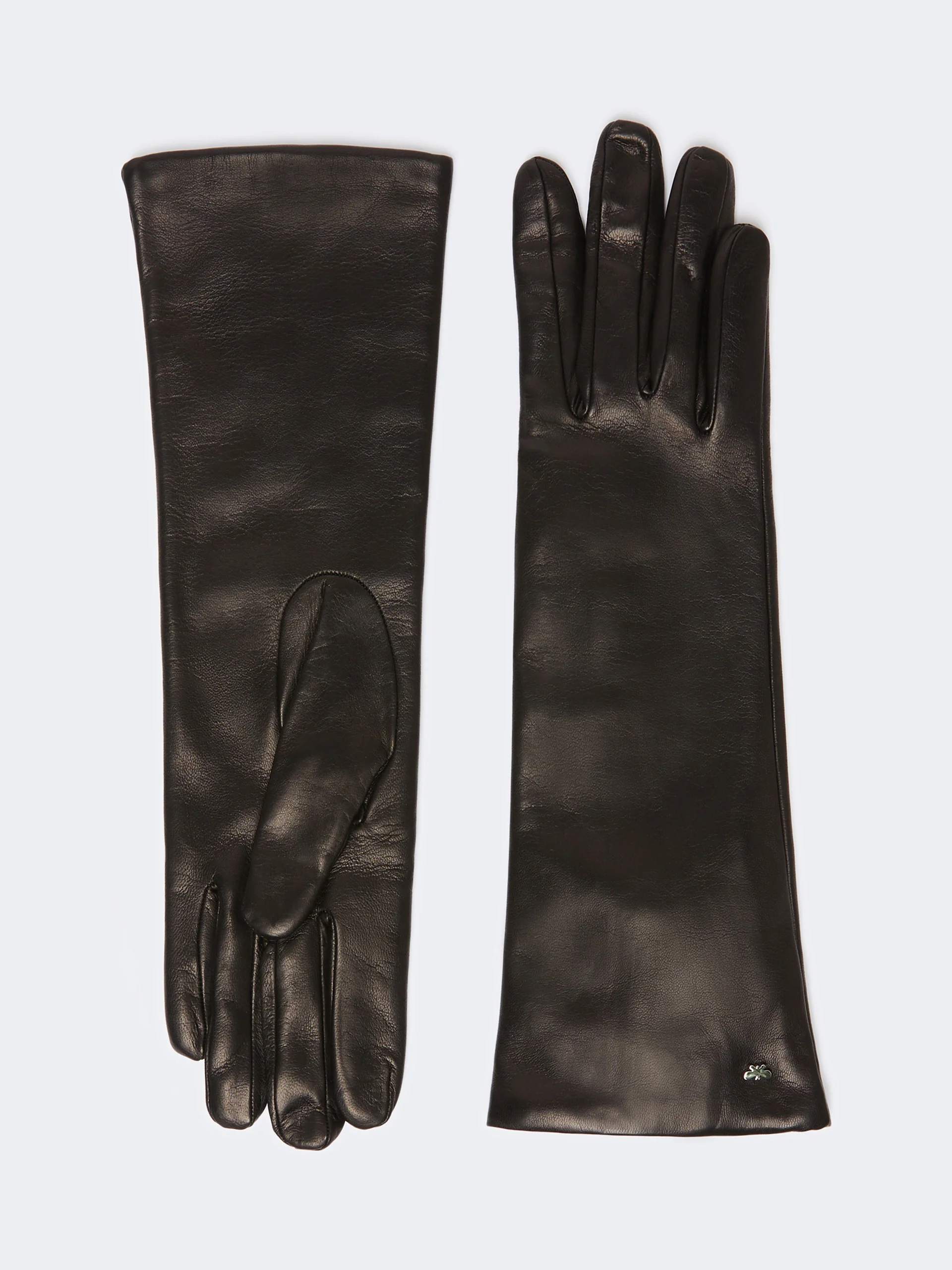 DETAILS Customised semi-long gloves with small metal butterfly logo applied on the wrist. Gloves in soft lambskin nappa leather Wool lining COMPOSITION AND CARE Style in lamb leather; lining 100% wool. Do not wash; do not bleach; do not tumble dry; do not iron; do not dry clean; do not wet clean.; do not wash or dry clean by fabric methods. clean only by leather and fur specialists. Distributed by Max Mara S.r.l., registered office in Reggio Emilia (Italy), Via Giulia Maramotti 4, 42124 (IT)