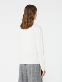 DETAILS Basic jumper with a loose fit. Silk and wool plain-knit jumper Crew neck Long set-in sleeves Ribbed trim COMPOSITION AND CARE 44% silk, 30% wool, 22% polyamide, 4% elastane. Hand wash cold (40°c max); do not bleach; do not tumble dry; flat drying in the shade; cool iron; professionally dry clean perchloroethylene - mild process; do not wet clean.; iron with a cloth between.; using neutral detergent. Distributed by Max Mara S.r.l., registered office in Reggio Emilia (Italy), Via Giulia Maramotti 4, 42124 (IT)