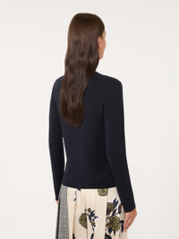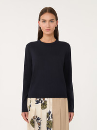 DETAILS Basic jumper with a loose fit. Silk and wool plain-knit jumper Crew neck Long set-in sleeves Ribbed trim COMPOSITION AND CARE 44% silk, 30% wool, 22% polyamide, 4% elastane. Hand wash cold (40°c max); do not bleach; do not tumble dry; flat drying in the shade; cool iron; professionally dry clean perchloroethylene - mild process; do not wet clean.; iron with a cloth between.; using neutral detergent. Distributed by Max Mara S.r.l., registered office in Reggio Emilia (Italy), Via Giulia Maramotti 4, 42124 (IT)