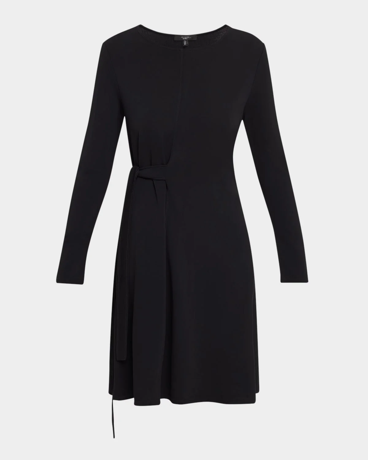 This Weekend Max Mara dress is crafted in fluid viscose & nbsp;jersey with a self-tie sash on the waist that creates a faux wrap front Scoop neckline Long sleeves Side self-tie Hem hits around the knee A-line silhouette Slipover style Viscose/elastane Dry clean Imported