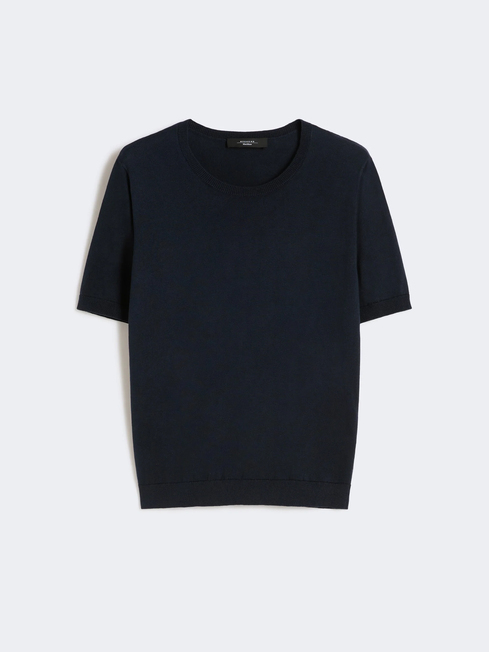 DETAILS Jumper with regular volume and length. - Silk and cotton yarn jumper - Crew-neck - Short set-in sleeves - Rib-knit trims COMPOSITION AND CARE 55% silk, 45% cotton. Hand wash cold (40°c max); do not bleach; do not tumble dry; flat drying in the shade; cool iron; professionally dry clean perchloroethylene - mild process; do not wet clean.; iron with a cloth between.; using neutral detergent.; turn the articles inside out before washing. Distributed by Max Mara S.r.l., registered office in Reggio Emilia (Italy), Via Giulia Maramotti 4, 42124 (IT) Collection: Weekend Max Mara Product code: 5361086106003 - WKDGABARRA