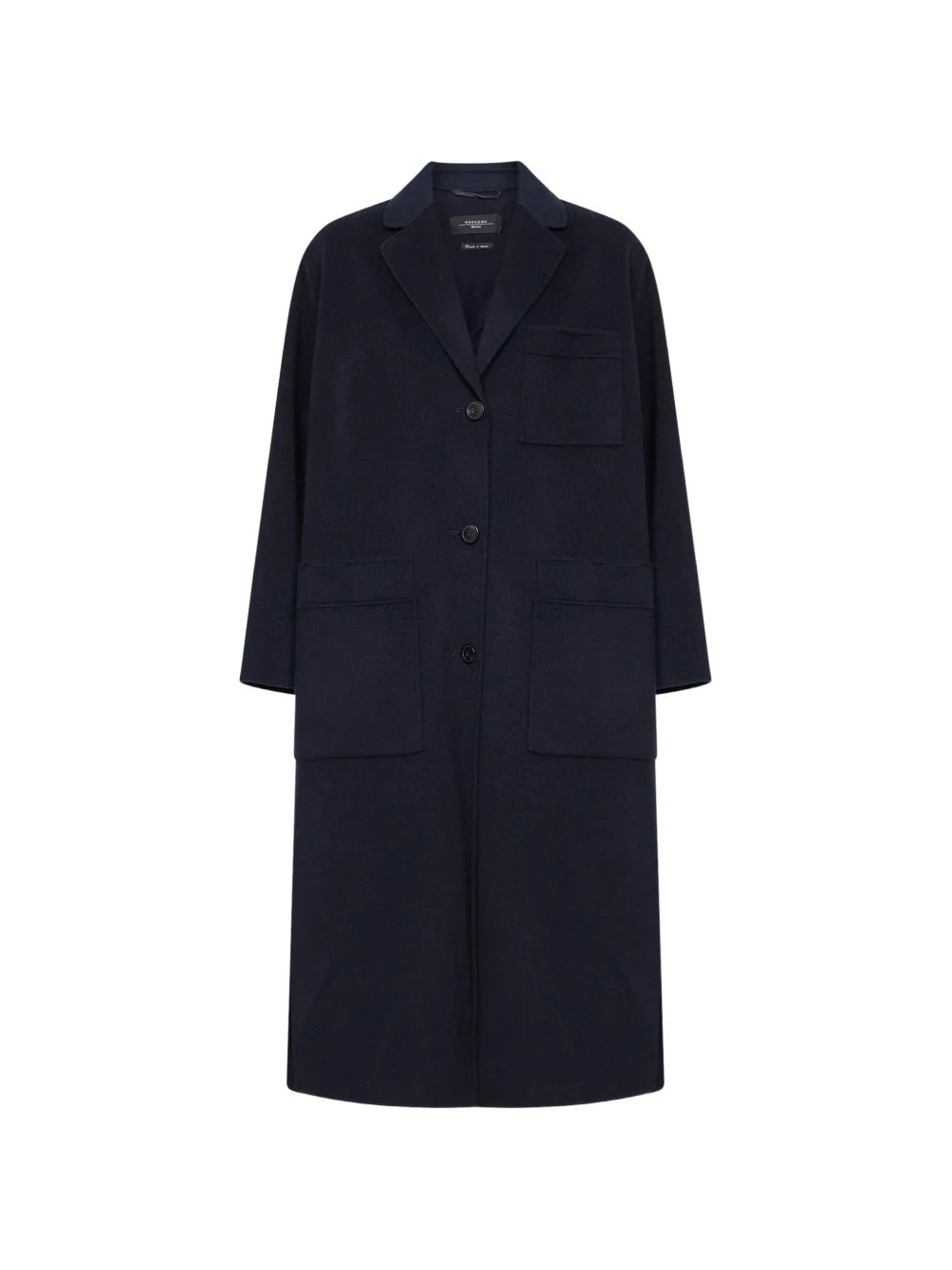 single-breasted coat Highlights - Navy blue - Lapel collar - Three-button placket - Dropped shoulders - Side slits - Patch pockets Imported Composition Outer: Virgin Wool 90%, Polyamide 10% Lining: Polyester 52%, Viscose 48% Washing instructions Read Manufacturer Guidelines