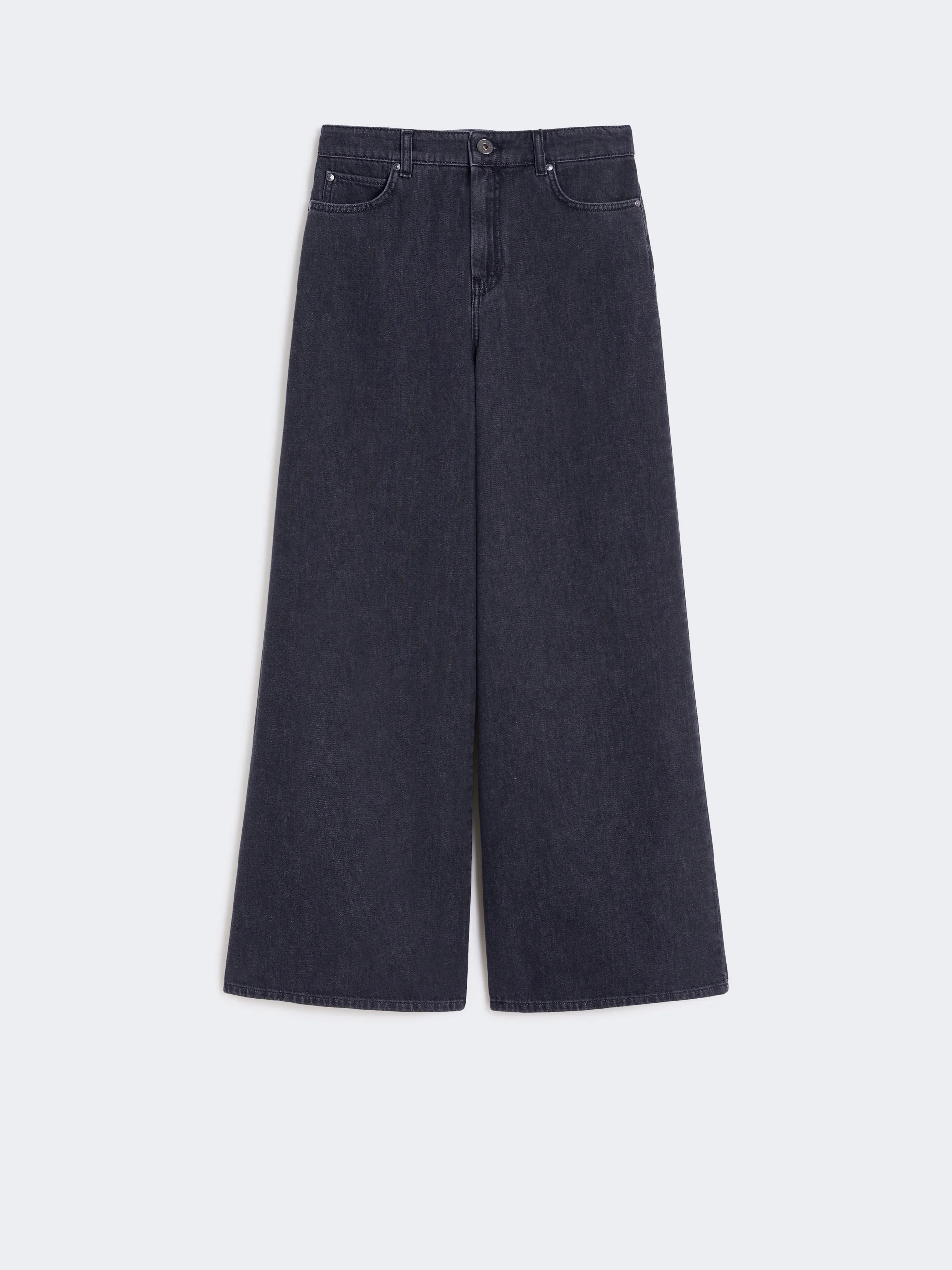 DETAILS Five-pocket jeans with a wide-leg silhouette, customised with a butterfly logo label on the right back pocket. - Main fabric with cotton fibers, grown and processed according to organic farming systems - "Nano bubble" treatment technology - Jeans in soft pure cotton denim - Wide leg - Fly-covered zip and metal tack button fastening - Metallic rivets and belt loops at the waist - Logo label on the waist back COMPOSITION AND CARE 100% cotton. Machine wash cold delicate cycle; do not bleach; do not tumble dry; line drying in the shade; cool iron; do not dry clean.; wash the garment while it is fastened.; don’t iron the labels.; turn the articles inside out before washing.; take care when wearing light-coloured clothes or accessories because, with the heat of the body, the denim fabric that comes into contact with them may bleed and stain. be careful while sitting on pale colored surfaces, especially if wet. wash denim items separately and always turned inside out. hang the garment turned inside out by avoiding to expose it to direct sunlight. avoid removing isolated stains.; contains non-textile parts of animal origin. Distributed by Max Mara S.r.l., registered office in Reggio Emilia (Italy), Via Giulia Maramotti 4, 42124 (IT) Collection: Weekend Max Mara Product code: 5181046106013 - WKDVEGA
