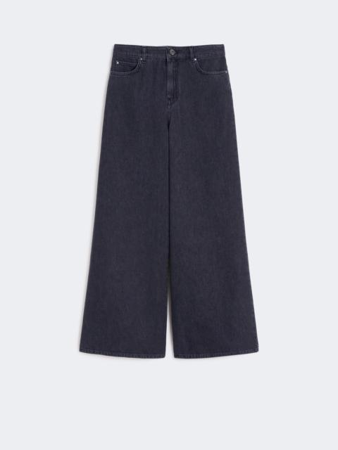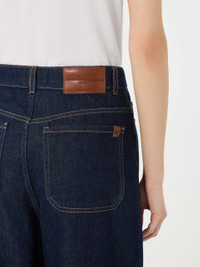 DETAILS Five-pocket jeans with a wide-leg silhouette, customised with a butterfly logo label on the right back pocket. - Main fabric with cotton fibers, grown and processed according to organic farming systems - "Nano bubble" treatment technology - Jeans in soft pure cotton denim - Wide leg - Fly-covered zip and metal tack button fastening - Metallic rivets and belt loops at the waist - Logo label on the waist back COMPOSITION AND CARE 100% cotton. Machine wash cold delicate cycle; do not bleach; do not tumble dry; line drying in the shade; cool iron; do not dry clean.; wash the garment while it is fastened.; don’t iron the labels.; turn the articles inside out before washing.; take care when wearing light-coloured clothes or accessories because, with the heat of the body, the denim fabric that comes into contact with them may bleed and stain. be careful while sitting on pale colored surfaces, especially if wet. wash denim items separately and always turned inside out. hang the garment turned inside out by avoiding to expose it to direct sunlight. avoid removing isolated stains.; contains non-textile parts of animal origin. Distributed by Max Mara S.r.l., registered office in Reggio Emilia (Italy), Via Giulia Maramotti 4, 42124 (IT) Collection: Weekend Max Mara Product code: 5181046106001 - WKDVEGA