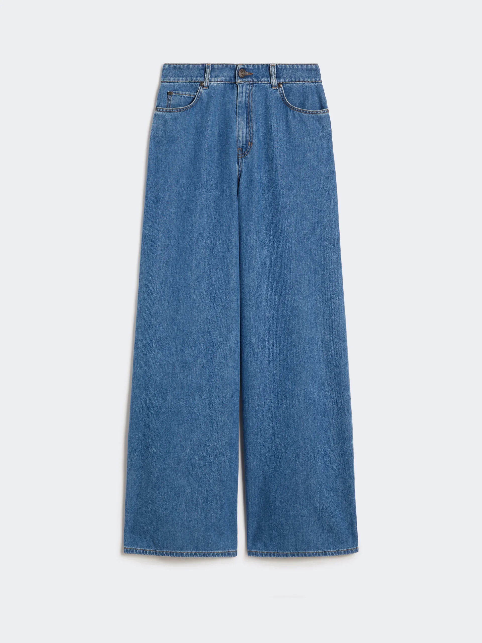 DETAILS Five-pocket jeans with a wide-leg silhouette, customised with a butterfly logo label on the right back pocket. - Main fabric with cotton fibers, grown and processed according to organic farming systems - "Nano bubble" treatment technology - Jeans in soft pure cotton denim - Wide leg - Fly-covered zip and metal tack button fastening - Metallic rivets and belt loops at the waist - Logo label on the waist back COMPOSITION AND CARE 100% cotton. Machine wash cold delicate cycle; do not bleach; do not tumble dry; line drying in the shade; cool iron; do not dry clean.; wash the garment while it is fastened.; don’t iron the labels.; turn the articles inside out before washing.; take care when wearing light-coloured clothes or accessories because, with the heat of the body, the denim fabric that comes into contact with them may bleed and stain. be careful while sitting on pale colored surfaces, especially if wet. wash denim items separately and always turned inside out. hang the garment turned inside out by avoiding to expose it to direct sunlight. avoid removing isolated stains.; contains non-textile parts of animal origin. Distributed by Max Mara S.r.l., registered office in Reggio Emilia (Italy), Via Giulia Maramotti 4, 42124 (IT) Collection: Weekend Max Mara Product code: 5181046106002 - WKDVEGA