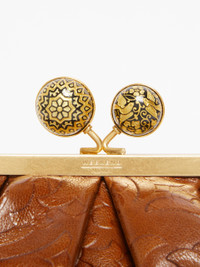DETAILS A tribute to Spanish tradition, the Spanish Heritage Pasticcino Bag celebrates the mastery of Cordovan leather and the damascene technique crafted in Toledo, combining tradition and innovation. Each bag is a unique, numbered piece, an epitome of the distinctive spirit of Weekend Max Mara. Lambskin bag Printed viscose lining with customised label Removable chain shoulder strap with leather strap pad Iconic clutch bag closure with engraved metallic bobbles Measurements: 19 x 10 x 15 cm Supplied with a customised red dust bag COMPOSITION AND CARE Handbag in lamb leather; lining in viscose. Distributed by Max Mara S.r.l., registered office in Reggio Emilia (Italy), Via Giulia Maramotti 4, 42124 (IT)