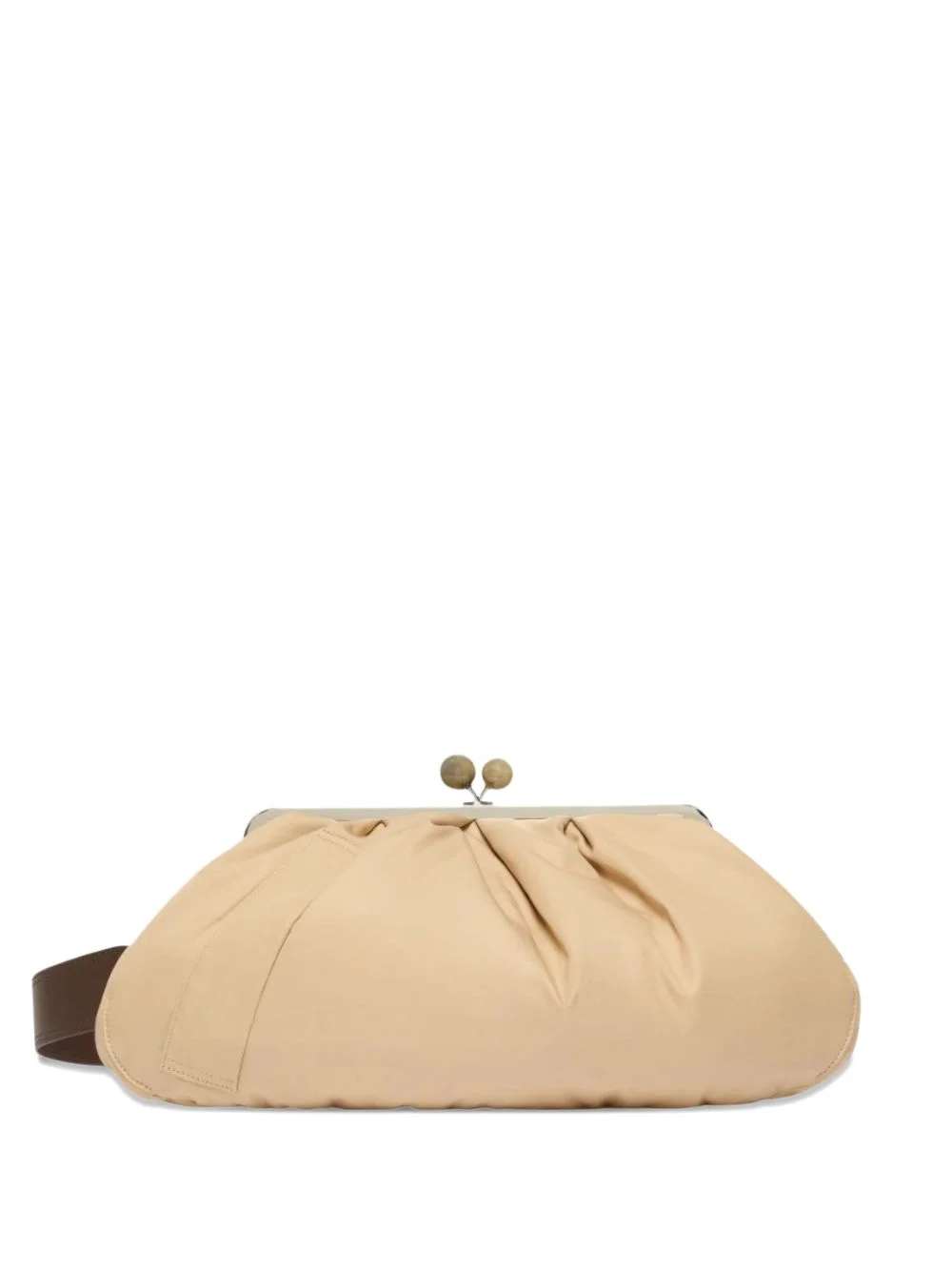 sphere-clasp clutch bag Highlights - Beige - Detachable shoulder strap - Sphere clasp - Gathered detailing Imported Composition Outer: Cotton 66%, Polyester 34%