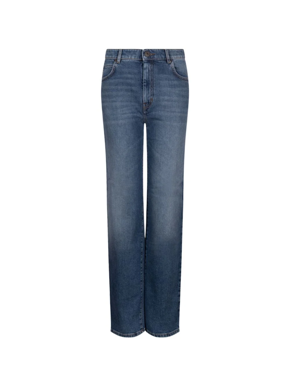 straight-leg jeans Highlights - Blue - Back patch pockets - Belt loops - Five pockets Imported Composition Cotton 98%, Spandex/Elastane 2% Washing instructions Read Manufacturer Guidelines