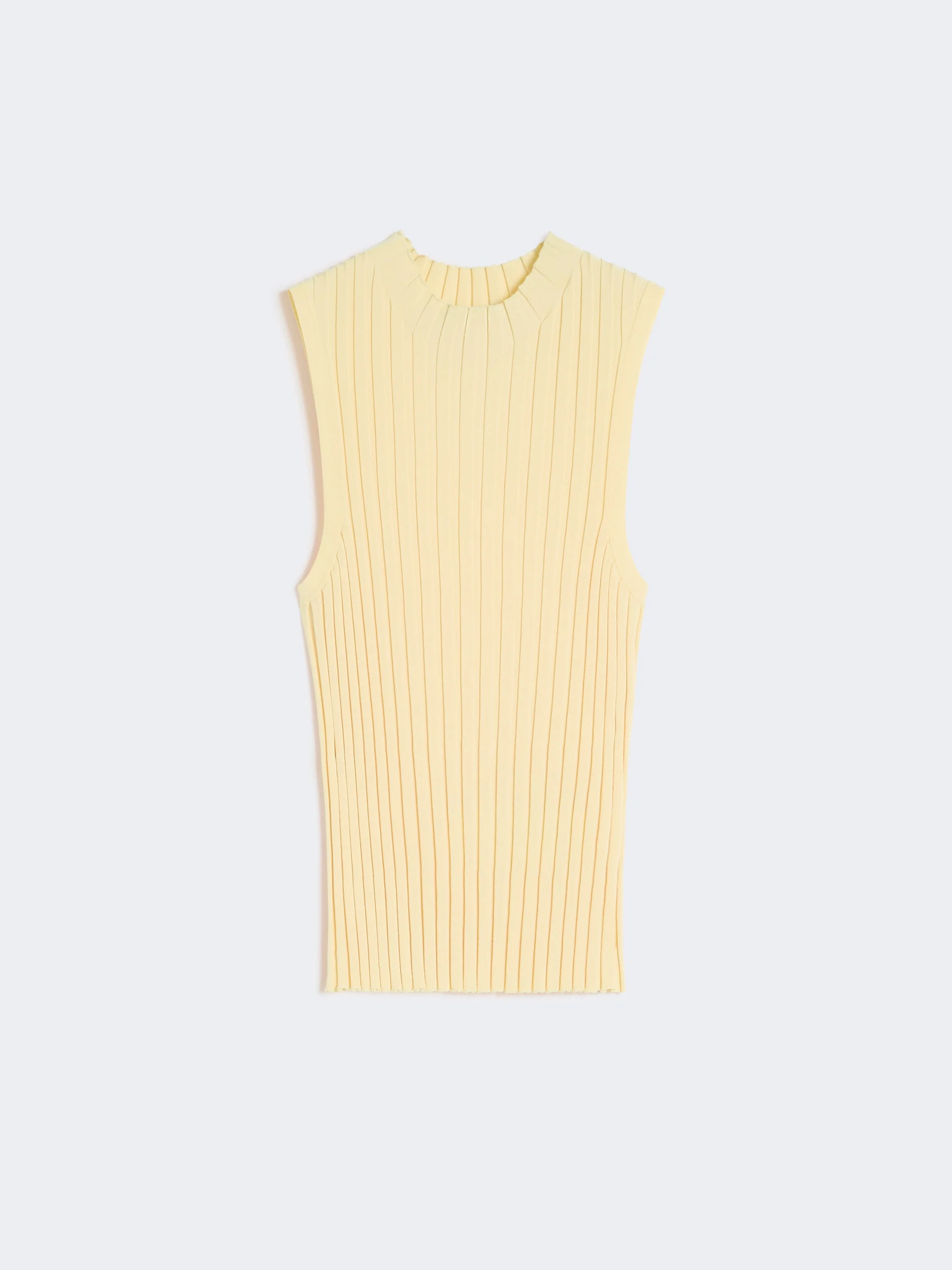 DETAILS Sleeveless jumper featuring a ribbed knit that accentuates the silhouette. - Slim fit - Stretch viscose yarn jumper - Stand collar - Straight hem COMPOSITION AND CARE 77% viscose, 23% polyamide. Hand wash cold (40°c max); do not bleach; do not tumble dry; flat drying in the shade; cool iron; do not dry clean; do not wet clean.; iron with a cloth between.; using neutral detergent. Distributed by Max Mara S.r.l., registered office in Reggio Emilia (Italy), Via Giulia Maramotti 4, 42124 (IT) Collection: Weekend Max Mara Product code: 5361026206003 - WKDBAUTTA