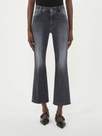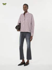 DETAILS 5-pocket jeans with a cropped ankle cut. - Jeans in super stretch cotton denim - Ultra-slim fit that flares slightly at the hem - Fly-covered zip and metal tack button fastening - Metallic rivets and belt loops at the waist - Butterfly logo label on the back pocket - Logo label on the waist back COMPOSITION AND CARE 92% cotton, 6% elastomultiester, 2% elastane. Machine wash cold delicate cycle; do not bleach; do not tumble dry; line drying in the shade; cool iron; do not dry clean.; wash the garment while it is fastened.; don’t iron the labels.; turn the articles inside out before washing.; take care when wearing light-coloured clothes or accessories because, with the heat of the body, the denim fabric that comes into contact with them may bleed and stain. be careful while sitting on pale colored surfaces, especially if wet. wash denim items separately and always turned inside out. hang the garment turned inside out by avoiding to expose it to direct sunlight. avoid removing isolated stains.; contains non-textile parts of animal origin. Distributed by Max Mara S.r.l., registered office in Reggio Emilia (Italy), Via Giulia Maramotti 4, 42124 (IT) Collection: Weekend Max Mara Product code: 5181076106008 - WKDRAPALLO