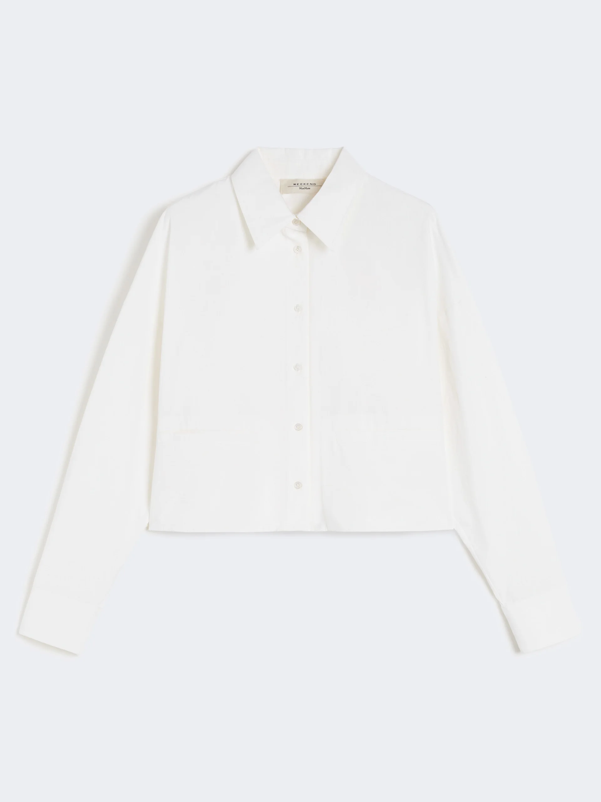 DETAILS Boxy-fit shirt with a cropped waist cut. Shirt in heavy pure cotton poplin fabric Classic pointed collar Long low set-in sleeves with buttoned cuffs Visible button fastening on the front Horizontal-welt pockets on the front COMPOSITION AND CARE 100% cotton. Machine wash cold delicate cycle; do not bleach; do not tumble dry; line drying in the shade; cool iron; professionally dry clean perchloroethylene - mild process.; wash the garment while it is fastened.; turn the articles inside out before washing.; contains non-textile parts of animal origin. Distributed by Max Mara S.r.l., registered office in Reggio Emilia (Italy), Via Giulia Maramotti 4, 42124 (IT)