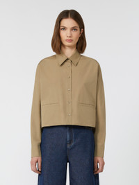 DETAILS Boxy-fit shirt with a cropped waist cut. - Shirt in heavy pure cotton poplin fabric - Classic pointed collar - Long low set-in sleeves with buttoned cuffs - Visible button fastening on the front - Horizontal-welt pockets on the front COMPOSITION AND CARE 100% cotton. Machine wash cold delicate cycle; do not bleach; do not tumble dry; line drying in the shade; cool iron; professionally dry clean perchloroethylene - mild process.; wash the garment while it is fastened.; turn the articles inside out before washing.; contains non-textile parts of animal origin. Distributed by Max Mara S.r.l., registered office in Reggio Emilia (Italy), Via Giulia Maramotti 4, 42124 (IT)