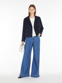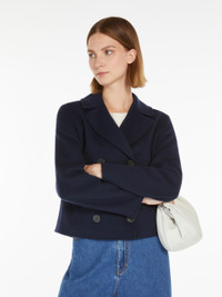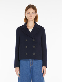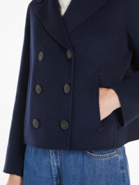 DETAILS Short pea coat in fine hand-sewn double-faced pure wool fabric. The classic double-breasted design boasts a lapel collar, long set-in sleeves and vertical-welt pockets. Unlined model. Front button fastening. COMPOSITION AND CARE Fabric 90% virgin wool, 10% polyamide; - except joining thread; sleeves lining 50% polyester, 50% viscose. Do not wash; do not bleach; do not tumble dry; cool iron; professionally dry clean perchloroethylene - mild process; do not wet clean. Distributed by Max Mara S.r.l., registered office in Reggio Emilia (Italy), Via Giulia Maramotti 4, 42124 (IT)