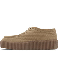 Ribbed suede derbys in beige. · Moc toe · Lace-up closure · Logo flag at outer side · Grained leather and suede lining · Ribbed platform midsole · Treaded rubber sole · Platform: H1.5" Supplier color: Sand Upper: calfskin. Sole: rubber. Made in Italy 251183F120001