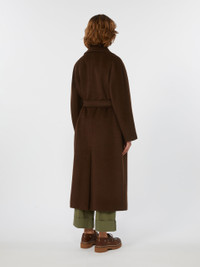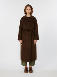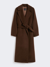 DETAILS Long coat with a robe silhouette and matching belt at the waist. Wool and alpaca blend fabric coat Flared Wide lapel collar Long kimono sleeves Welt pockets on the sides Centre slit on the back Lined COMPOSITION AND CARE Fabric 48% wool, 22% alpaca, 15% polyamide, 15% mohair; lining 50% acetate, 50% viscose. Do not wash; do not bleach; do not tumble dry; cool iron; professionally dry clean perchloroethylene - mild process; do not wet clean. Distributed by Max Mara S.r.l., registered office in Reggio Emilia (Italy), Via Giulia Maramotti 4, 42124 (IT)