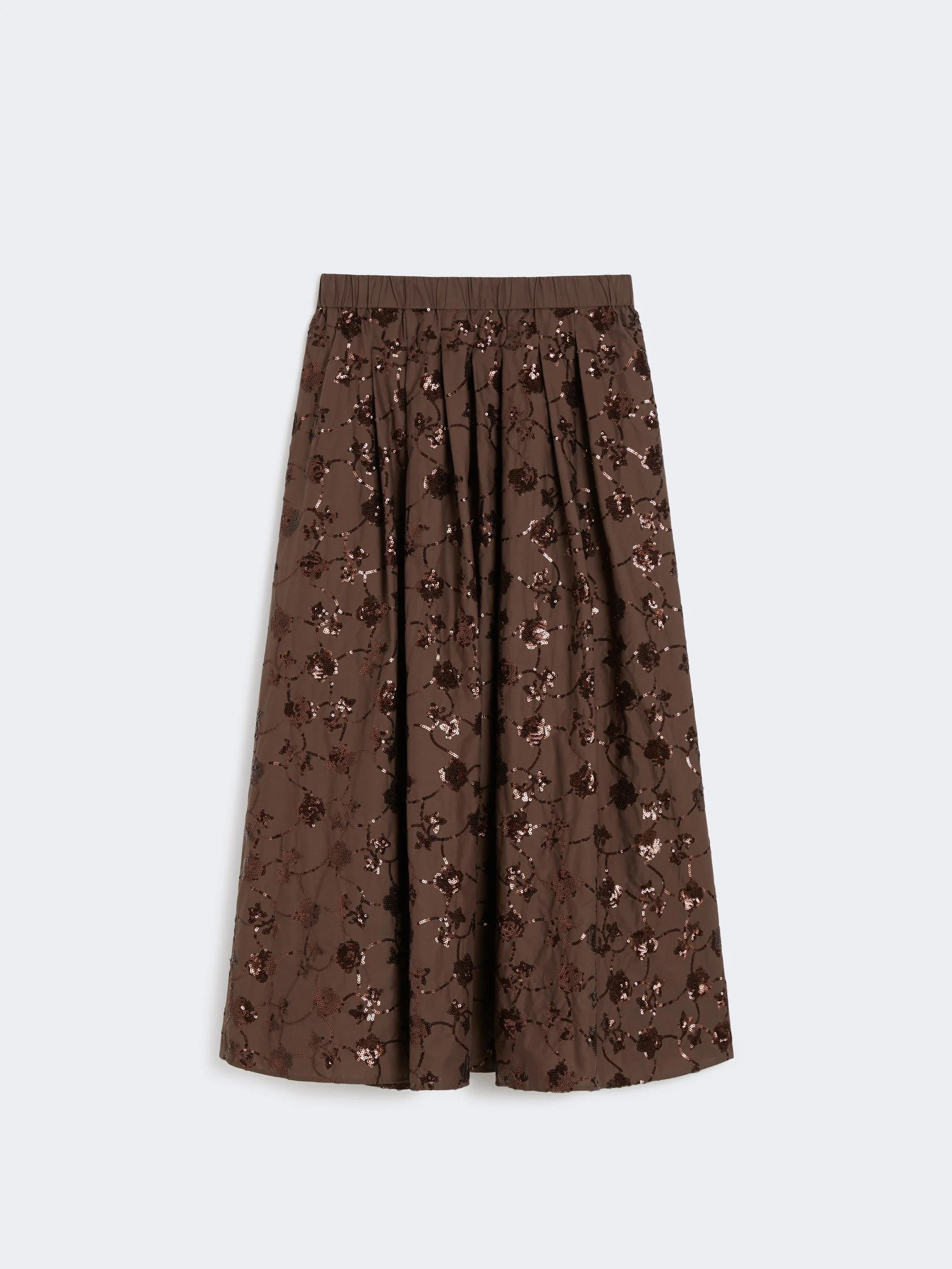 DETAILS Midi skirt featuring all-over sequin-embroidered detail. - Pure cotton poplin skirt - Comfort fit - Elasticated waistband - Side zip fastening - In-seam side pockets - Lined model COMPOSITION AND CARE Fabric 100% cotton; joining thread 100% polyester; lining 100% polyester; - exclusive of decoration. Hand wash cold; do not bleach; do not tumble dry; flat drying in the shade; do not iron; do not dry clean; do not wet clean.; using neutral detergent.; don’t rub. Distributed by Max Mara S.r.l., registered office in Reggio Emilia (Italy), Via Giulia Maramotti 4, 42124 (IT)