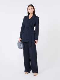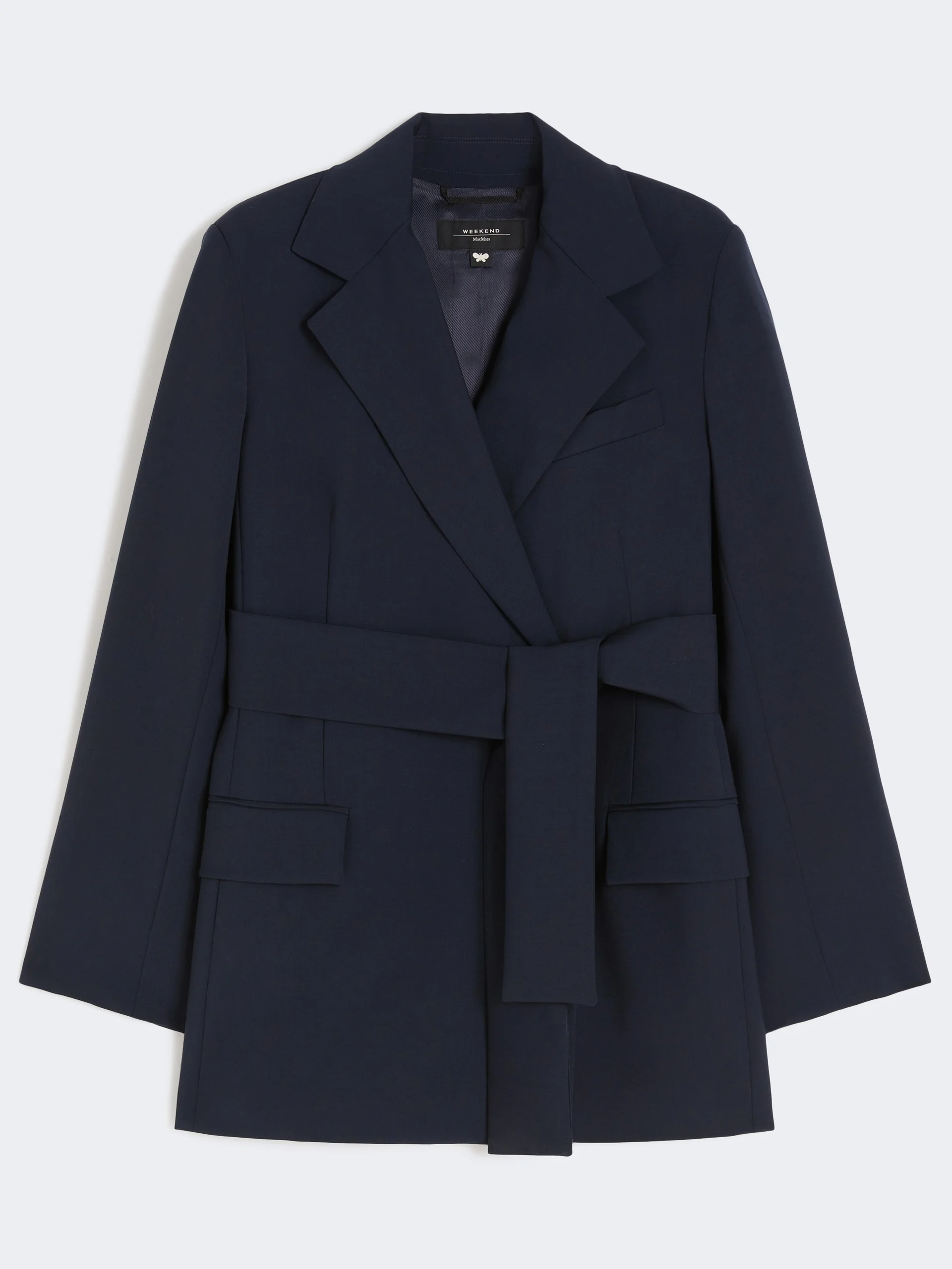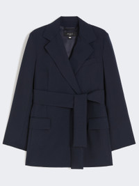 DETAILS Straight-fit jacket featuring a silhouette-accentuating tie belt at the waist. Jacket in natural stretch pure woollen cloth Lapel collar Long set-in sleeves Flap welt pockets on the front Breast pocket Long cuffs with deep side slit detail Lined model COMPOSITION AND CARE Fabric 100% virgin wool; lining 50% acetate, 50% viscose; sleeves lining 65% acetate, 31% polyamide, 4% elastane. Do not wash; do not bleach; do not tumble dry; cool iron; professionally dry clean perchloroethylene - mild process; do not wet clean. Distributed by Max Mara S.r.l., registered office in Reggio Emilia (Italy), Via Giulia Maramotti 4, 42124 (IT)