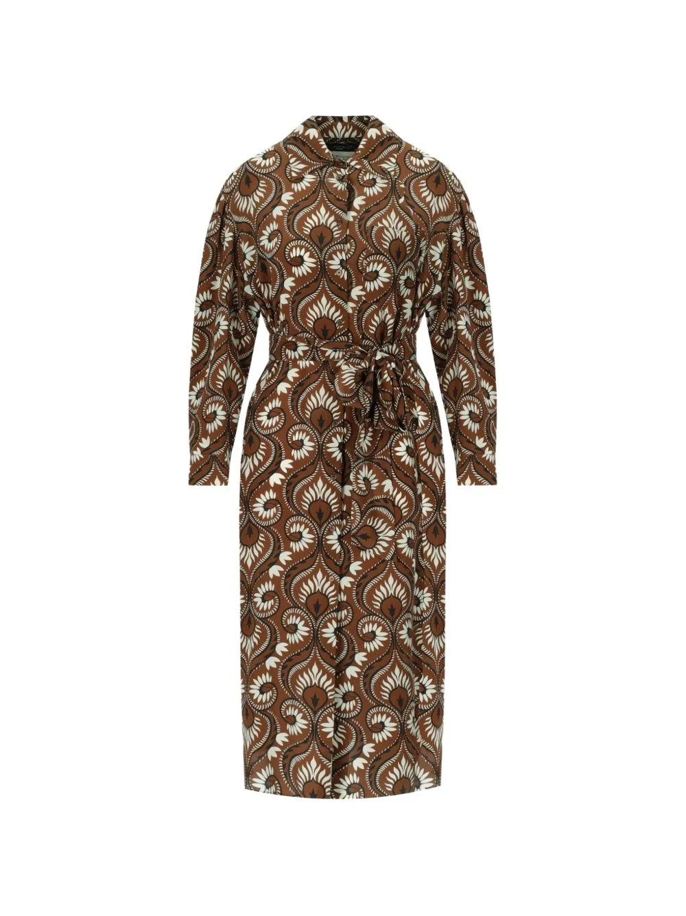 tie-waist printed dress Highlights - Brown - Floral print - Tie belt - Button fastening - Long sleeves - Midi length Imported Composition Silk 100% Washing instructions Read Manufacturer Guidelines