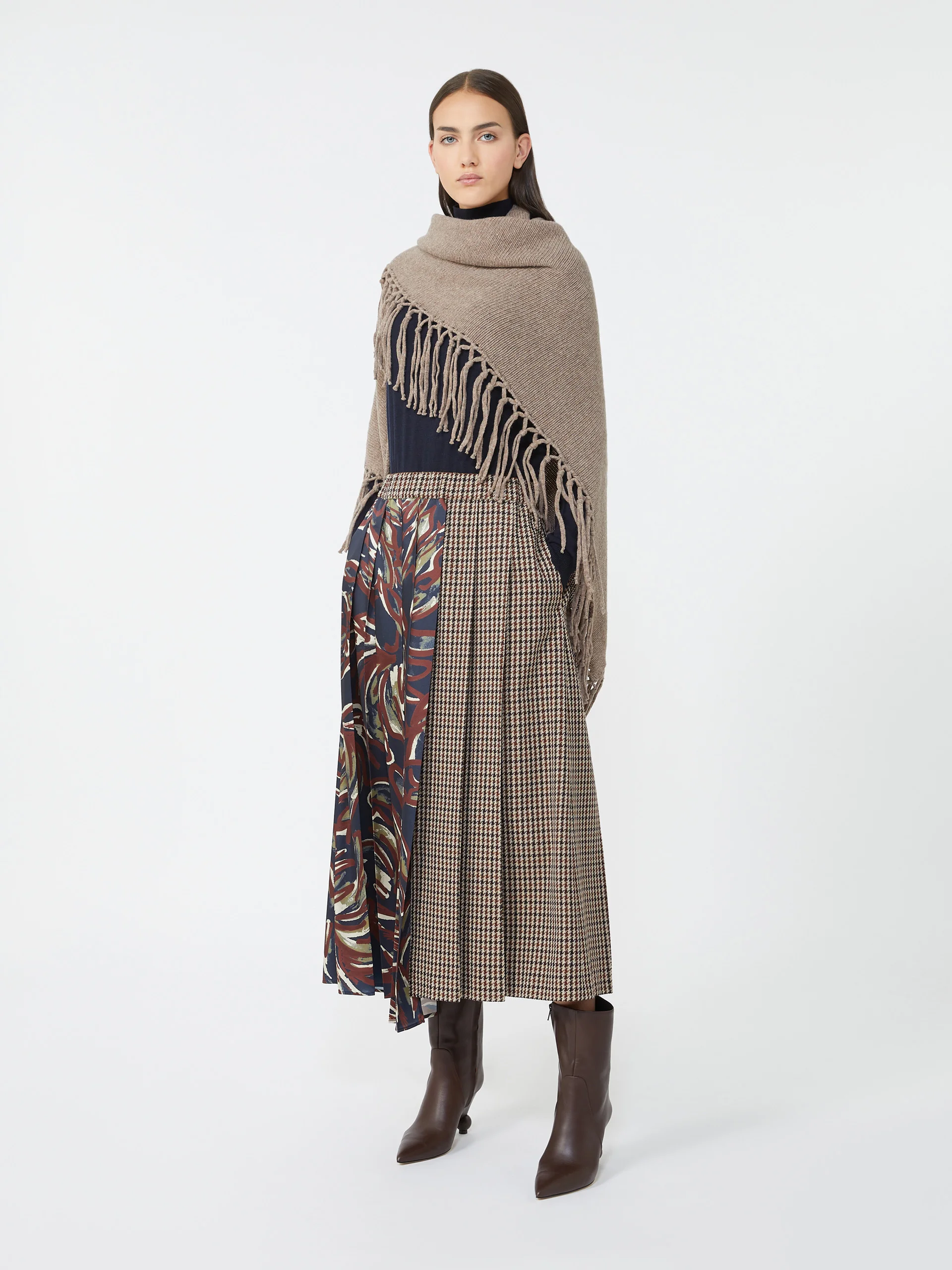 DETAILS Wide shawl with a triangular shape. Pure wool yarn shawl Knotted fringe motif on the short sides Butterfly label applied in the corner COMPOSITION AND CARE 100% virgin wool. Hand wash cold (40°c max); do not bleach; do not tumble dry; flat drying in the shade; cool iron; professionally dry clean perchloroethylene - mild process; do not wet clean.; iron with a cloth between.; using neutral detergent. Distributed by Max Mara S.r.l., registered office in Reggio Emilia (Italy), Via Giulia Maramotti 4, 42124 (IT)
