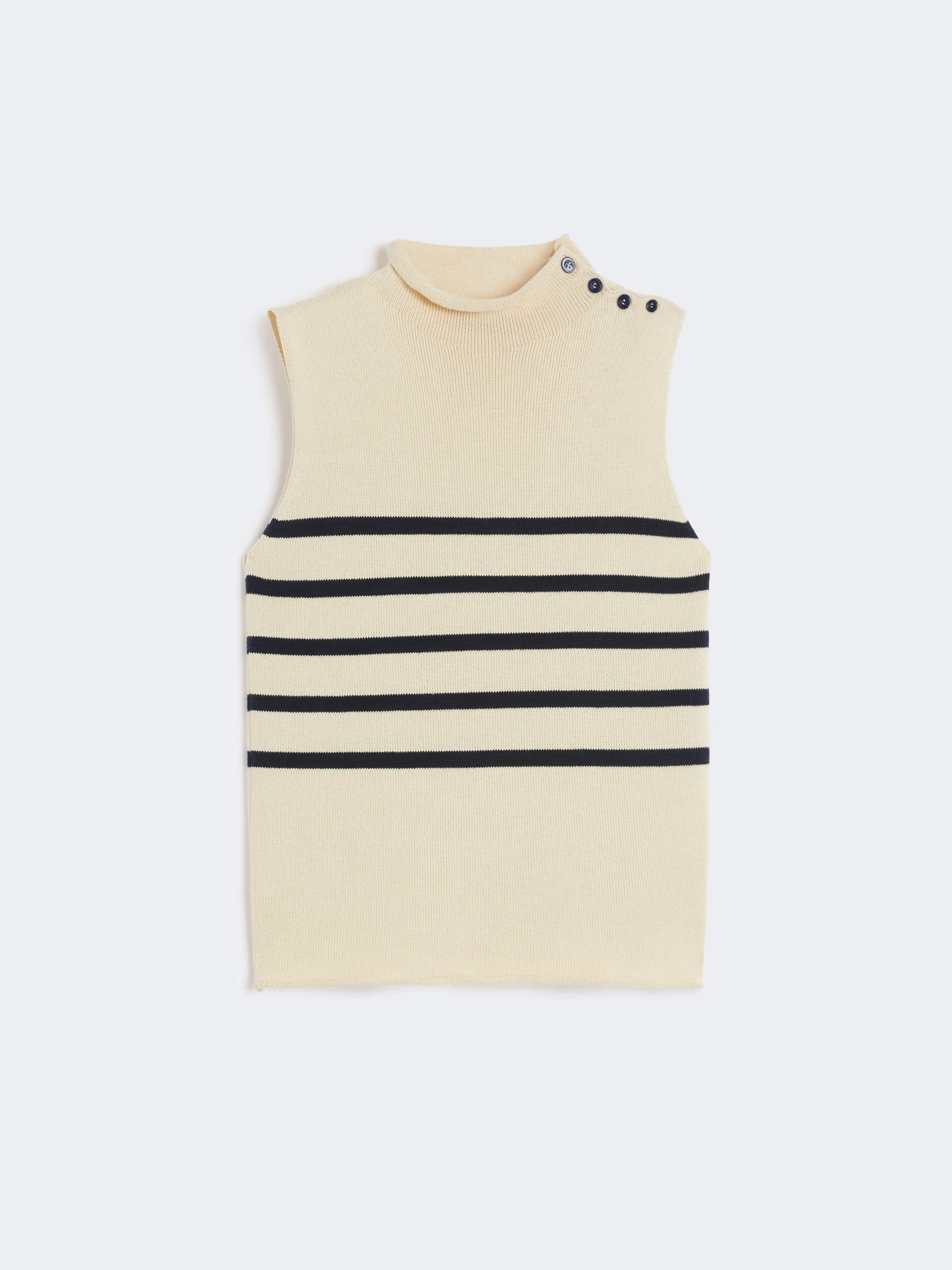 DETAILS Stockinette-stitched gilet with a regular fit and length. Pure cotton yarn gilet Straight fit High neck Mother-of-pearl button fastening on the left shoulder Raw-cut trims COMPOSITION AND CARE 100% cotton. Hand wash cold; do not bleach; do not tumble dry; flat drying in the shade; cool iron; professionally dry clean perchloroethylene - mild process; do not wet clean.; iron with a cloth between.; using neutral detergent. Distributed by Max Mara S.r.l., registered office in Reggio Emilia (Italy), Via Giulia Maramotti 4, 42124 (IT)