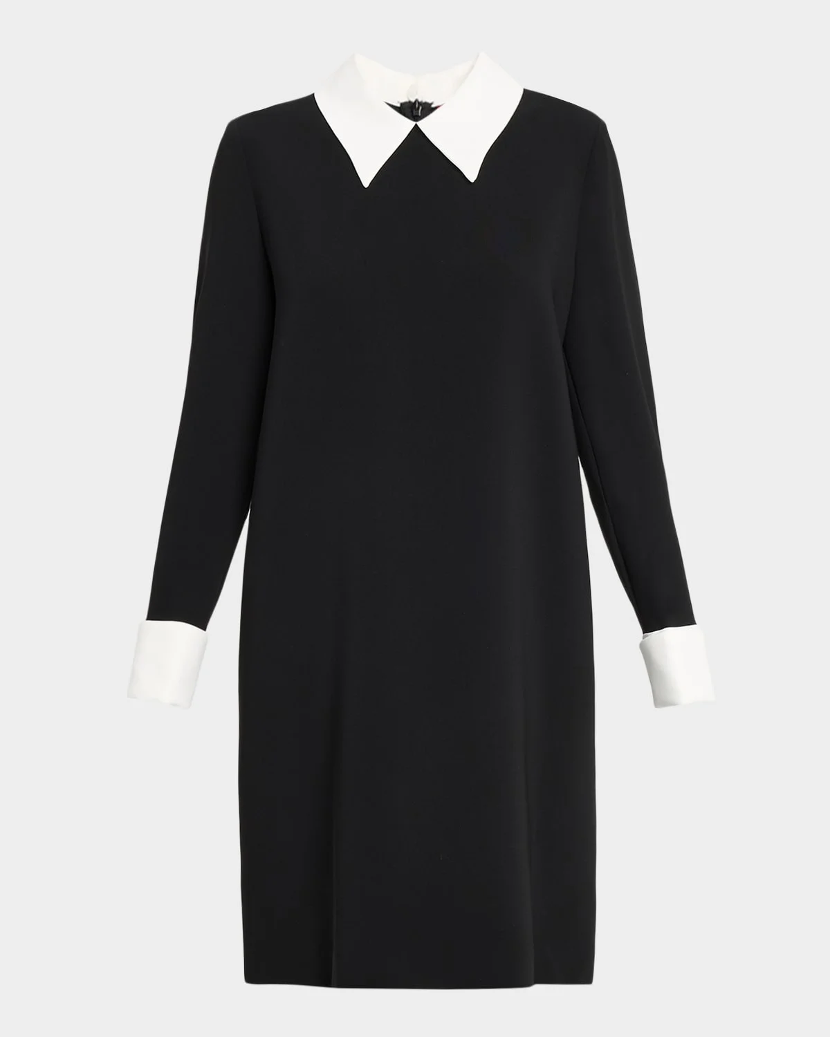 This Weekend Max Mara mini dress features a soft draping silhouette with contrast cuffs and collar Point collar Long sleeves Button cuffs Hem falls above the knee Shift silhouette Invisible back zipper Triacetate/polyester Dry clean Made in Romania SIZE & FITModel measurements: 5 & apos;10" tallModel is wearing a US size 4/Small
