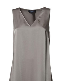 v-neck dress Highlights - Brown - Satin fabric - V-neck - Sleeveless - Midi length Imported Composition Polyester 100% Washing instructions Machine Wash