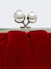DETAILS Small Pasticcino bag, a remarkable clutch that adds a personal, captivating touch to your daily style. Pure cotton sateen velvet bag Lining with patterned print and customised label Long removable chain shoulder strap with leather strap pad Metal closure with spheres finished with embedded rhinestones Measurements: 19 x 10 x 15 cm. COMPOSITION AND CARE Handbag in 100% cotton; lining in 100%polyester. Do not wash; do not bleach; do not tumble dry; do not iron; do not dry clean; do not wet clean. Distributed by Max Mara S.r.l., registered office in Reggio Emilia (Italy), Via Giulia Maramotti 4, 42124 (IT)
