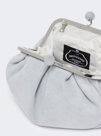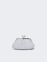 DETAILS The Small Pasticcino Bag is the awesome clutch that will add a personal, captivating touch to your everyday style. Bag in soft suede material Striped lining with a branded label Removable chain shoulder strap with leather pad detail Metal fastening with branded marble-look spheres Size: 19 x 10 x 15 cm. COMPOSITION AND CARE Handbag in sheep; lining in 100%polyester. Distributed by Max Mara S.r.l., registered office in Reggio Emilia (Italy), Via Giulia Maramotti 4, 42124 (IT)