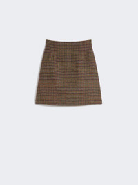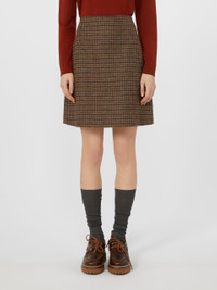 DETAILS Short skirt with an essential silhouette in Prince of Wales pattern. Pure wool fabric skirt with a Shetland-effect finish Slightly flared line Zip fastening in the centre of the back Darts sewn into the waistband at front and back Lined COMPOSITION AND CARE Outer fabric 96% virgin wool, 4% polyamide; inner fabric 100% polyester; lining 100% polyester. Do not wash; do not bleach; do not tumble dry; cool iron; professionally dry clean perchloroethylene - mild process; do not wet clean. Distributed by Max Mara S.r.l., registered office in Reggio Emilia (Italy), Via Giulia Maramotti 4, 42124 (IT)