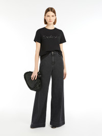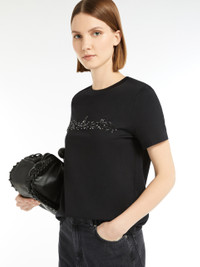 DETAILS Short-sleeved T-shirt in soft pure cotton jersey fabric. The straight-fit crew-neck model is customised with an embroidered print on the front and a butterfly logo on the back of the neck. COMPOSITION AND CARE Jersey fabric 100% cotton; - exclusive of decoration. Hand wash cold; do not bleach; do not tumble dry; flat drying in the shade; cool iron; do not dry clean; do not wet clean.; iron with a cloth between.; using neutral detergent.; don’t rub.; turn the articles inside out before washing.; to be ironed on reverse. Distributed by Max Mara S.r.l., registered office in Reggio Emilia (Italy), Via Giulia Maramotti 4, 42124 (IT)