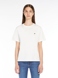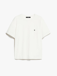 DETAILS Essential-fit short-sleeved T-shirt in soft pure cotton jersey fabric. The straight model boasts side slit detail and a rib-knit crew neckline. Small embroidered logo on the chest. COMPOSITION AND CARE Jersey fabric 100% cotton; - exclusive of embroideries. Machine wash cold delicate cycle; do not bleach; do not tumble dry; flat drying in the shade; cool iron; professionally dry clean perchloroethylene - mild process; professional wet cleaning - very mild process.; iron with a cloth between.; using neutral detergent. Distributed by Max Mara S.r.l., registered office in Reggio Emilia (Italy), Via Giulia Maramotti 4, 42124 (IT)