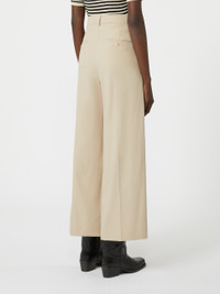 DETAILS Wide-fit trousers with double dart detail and a cropped above-ankle-length cut. Pure cotton gabardine trousers High-cut waistband with a fly-covered zip and hook-and-bar fastening Slant side pockets Buttoned welt rear pockets Belt loops and pressed pleat detail COMPOSITION AND CARE 100% cotton. Machine wash cold delicate cycle; do not bleach; do not tumble dry; line drying in the shade; cool iron; professionally dry clean perchloroethylene - mild process. Distributed by Max Mara S.r.l., registered office in Reggio Emilia (Italy), Via Giulia Maramotti 4, 42124 (IT)