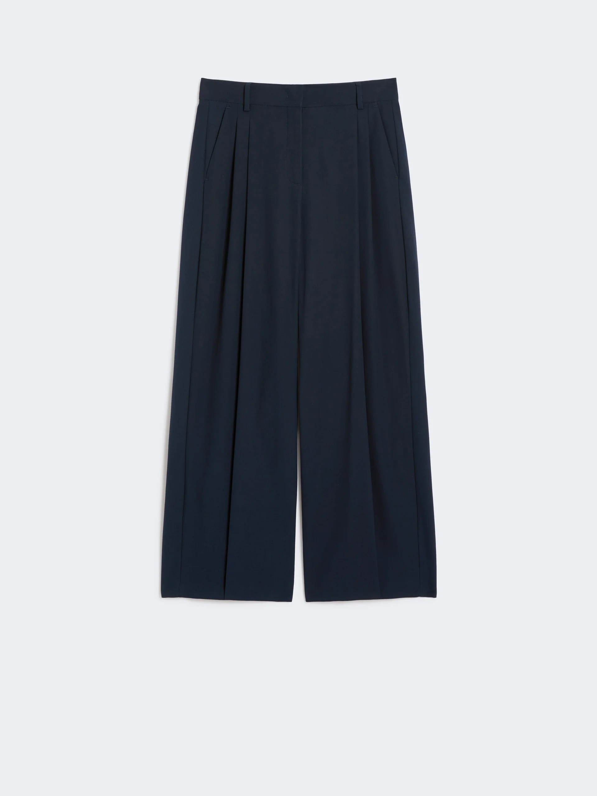 DETAILS Wide-fit trousers with double dart detail and a cropped above-ankle-length cut. Pure cotton gabardine trousers High-cut waistband with a fly-covered zip and hook-and-bar fastening Slant side pockets Buttoned welt rear pockets Belt loops and pressed pleat detail COMPOSITION AND CARE 100% cotton. Machine wash cold delicate cycle; do not bleach; do not tumble dry; line drying in the shade; cool iron; professionally dry clean perchloroethylene - mild process. Distributed by Max Mara S.r.l., registered office in Reggio Emilia (Italy), Via Giulia Maramotti 4, 42124 (IT)