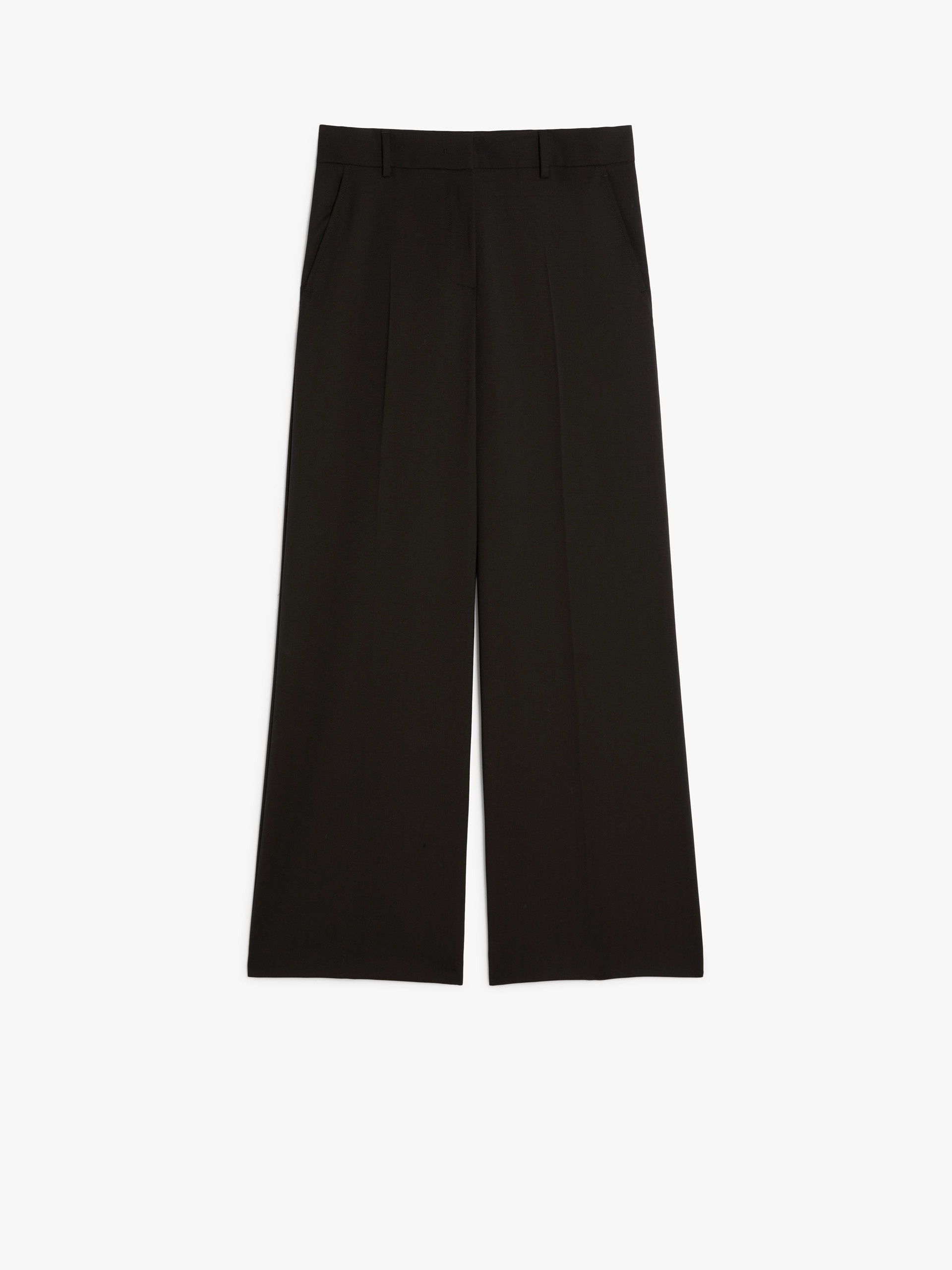 DETAILS Palazzo trousers in stretch pure woollen cloth. The relaxed-fit model boasts a straight leg, pressed pleat detail, slant side pockets and buttoned welt rear pockets. Belt loop detail and a high-cut waistband with a fly-covered zip and hook-and-bar fastening. COMPOSITION AND CARE 100% virgin wool. Do not wash; do not bleach; do not tumble dry; cool iron; professionally dry clean perchloroethylene - mild process; do not wet clean. Distributed by Max Mara S.r.l., registered office in Reggio Emilia (Italy), Via Giulia Maramotti 4, 42124 (IT)