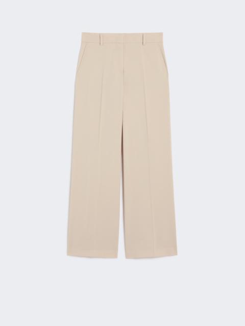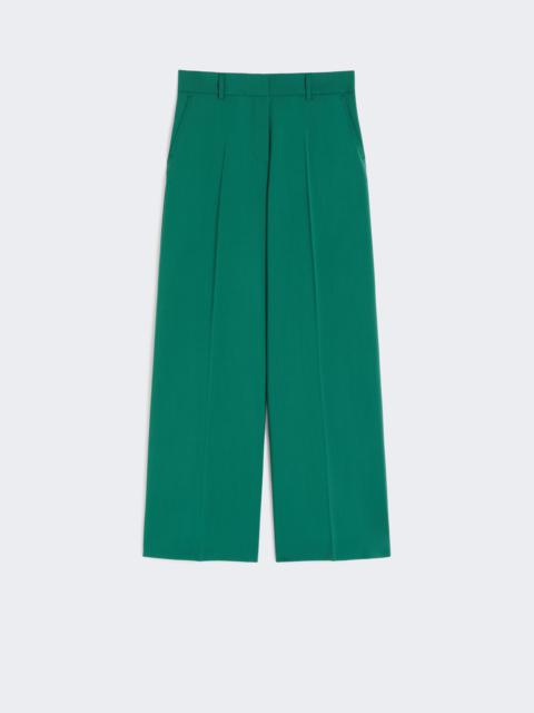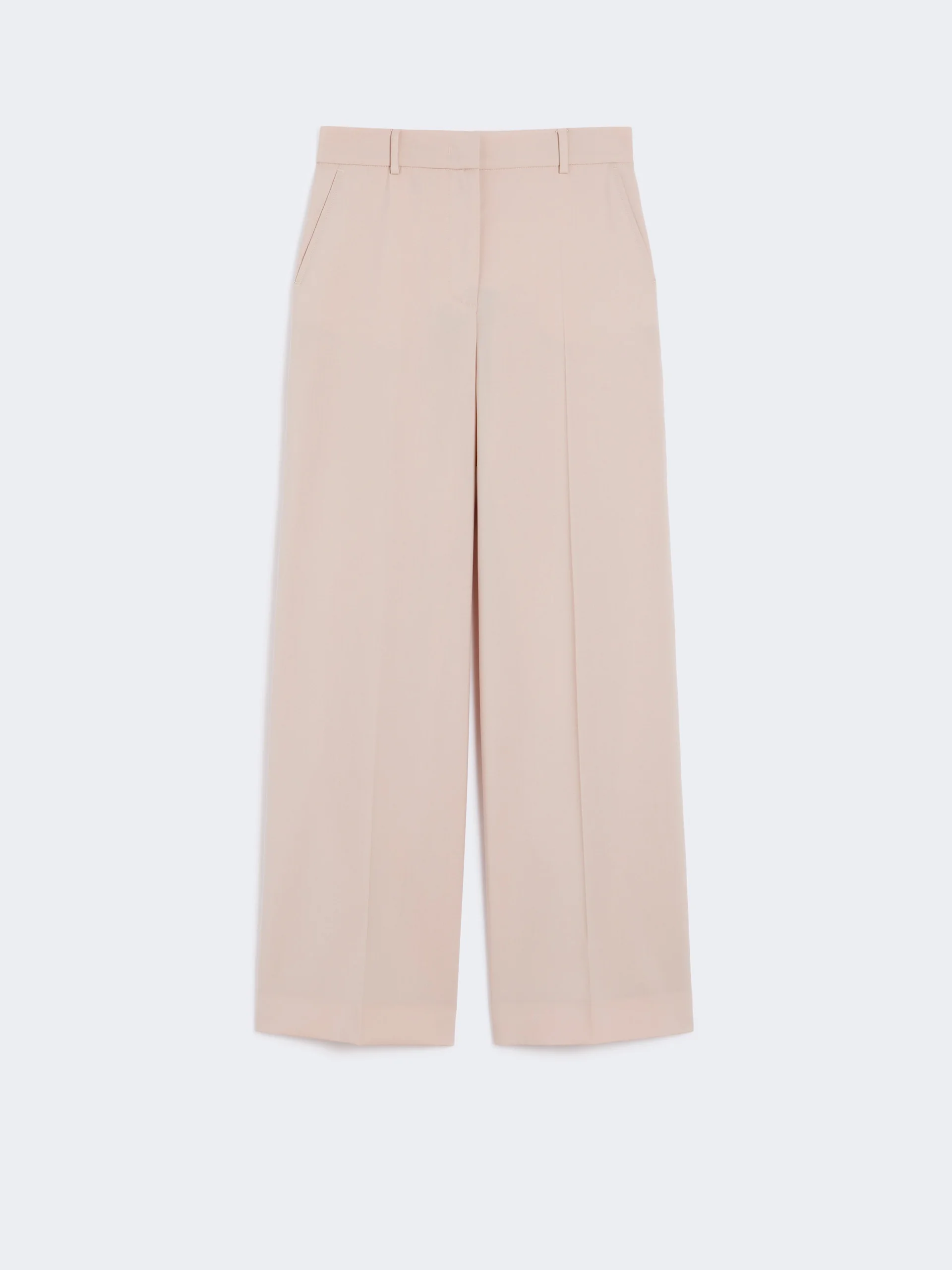 DETAILS Wide-leg palazzo trousers. - Trousers in natural stretch pure woollen cloth - High-cut waistband with a fly-covered zip and hook-and-bar fastening - Slant side pockets - Buttoned welt rear pockets - Belt loops on the waist and pressed pleat detail COMPOSITION AND CARE 100% virgin wool. Do not wash; do not bleach; do not tumble dry; cool iron; professionally dry clean perchloroethylene - mild process; do not wet clean. Distributed by Max Mara S.r.l., registered office in Reggio Emilia (Italy), Via Giulia Maramotti 4, 42124 (IT)